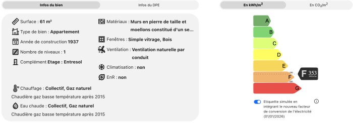 | Coût chauffage | 364 € /an |
