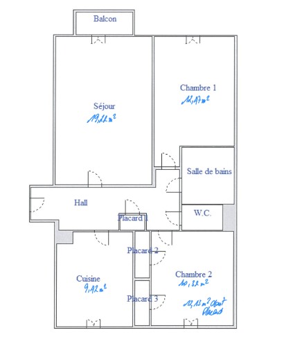 Appartement de 66,70 m2 dans petit copropriété avec ascenseur. Séjour de 19,03 m2 ouvrant sur balcon. Cuisine meublée. 2 chambres, salle de bains. Parking fermé, cave.